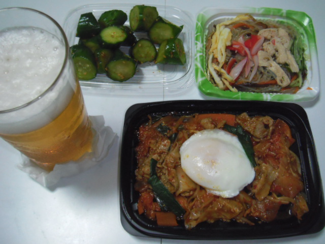 やっぱ、外メシ喰うと、帰った後のビールが不味くなるので、コンビニでつまみを買って・・・