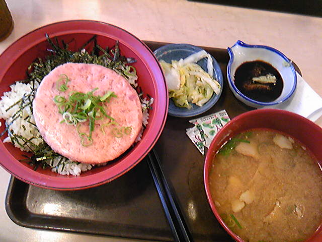 すきやのまぐろたたき丼+トン汁おしんこセット、610円也。